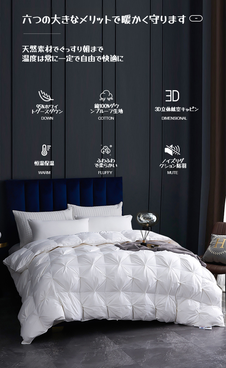 冬用軽量極厚羽毛布団の全体写真