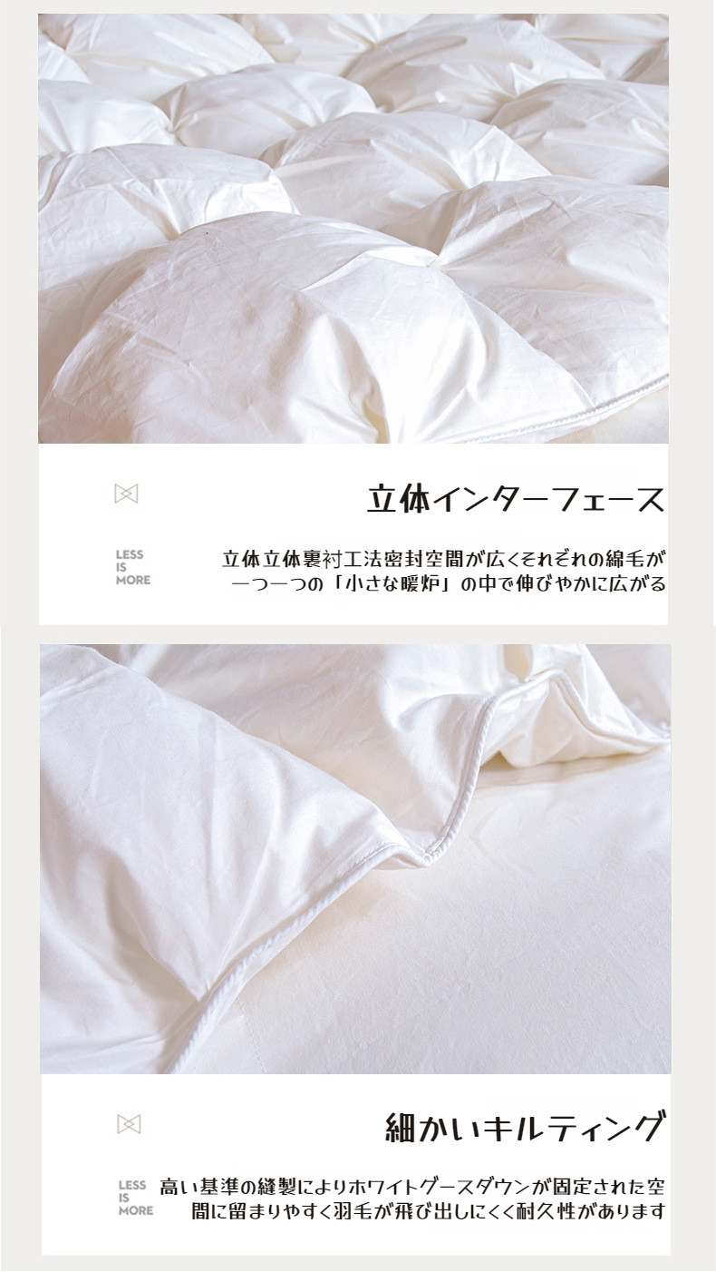 立体保温設計の羽毛布団断面図